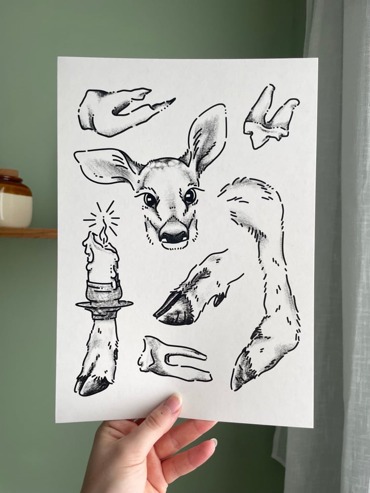 Digital illustration, printed on 100% recycled, warm toned paper.